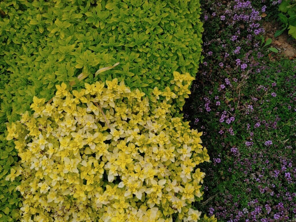 Weil ich mit mehreren Kameras fotografiere (Handy für den Blog, Spiegelreflex für einen Vortrag) habe ich auf die Aufnahme der Gesamtansicht des Blumengartens mit dem Handy vergessen. Die RAW-Format-Aufnahmen für den Vortrag haben 20 MByte pro Bild, die müsste ich zuerst auf der Speicherkarte suchen, übernehmen, dann extra verkleinern. Zuviel Aufwand, zuwenig Zeit.