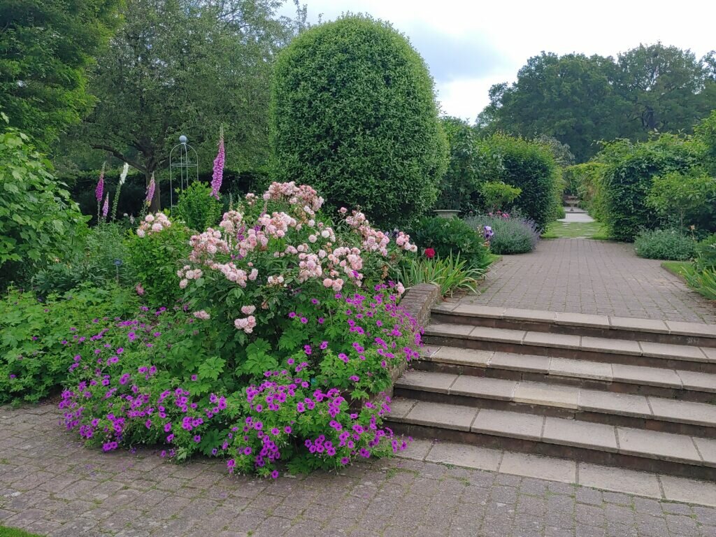 Eine andere häufig zu sehende Kombination: Rosen mit Storchschnabel (Geranium).