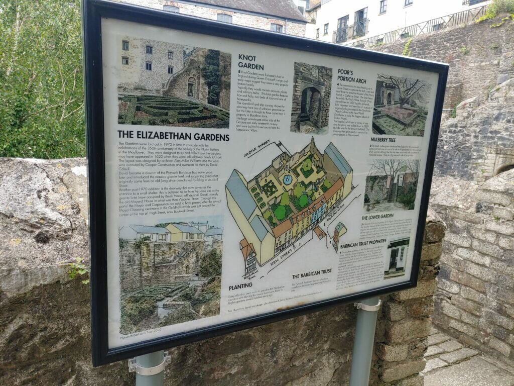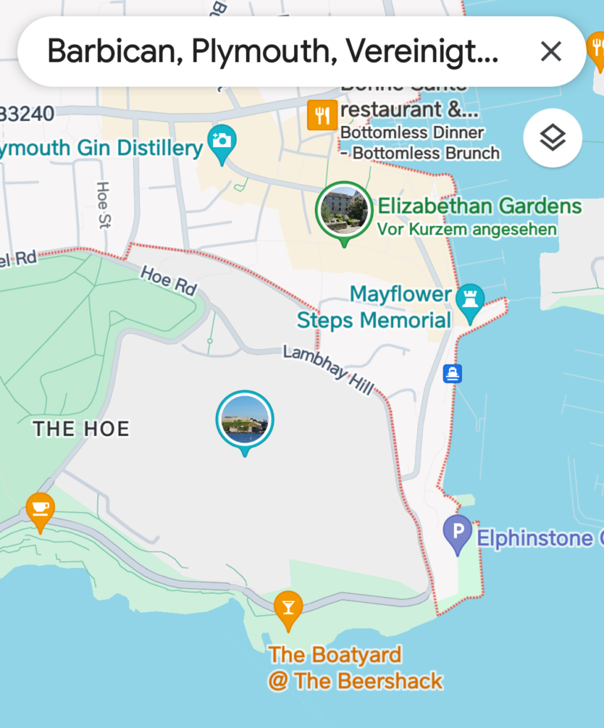 Laut einem Advisor ist der Trip „Elizabethan Gardens“ der zweitschönste Garten von Plymouth. Ich fand einen freien kostenlosen Parkplatz im trubeligen Hafenviertel Barbican (‚Barbicane‘ war ein vorspringender Teil einer Festung).
