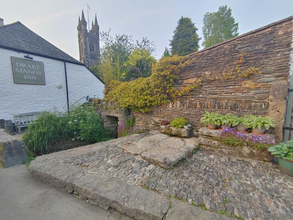 Im nahen Dorf „Buckland Monachorum“ entdeckte ich das „Drake Manor Inn“ mit gutem Essen, gutem Ale und ein paar schöne Vorgärten bei Reihenhäusern.