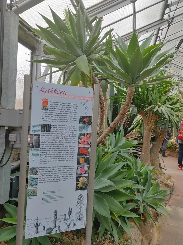 Im Zoo kann man sofort zu den Tieren gehen oder zuerst in ein altes langes Gewächshaus. Dieses beginnt mit Kakteen und nach und nach taucht man in die Tropenwelt ein.