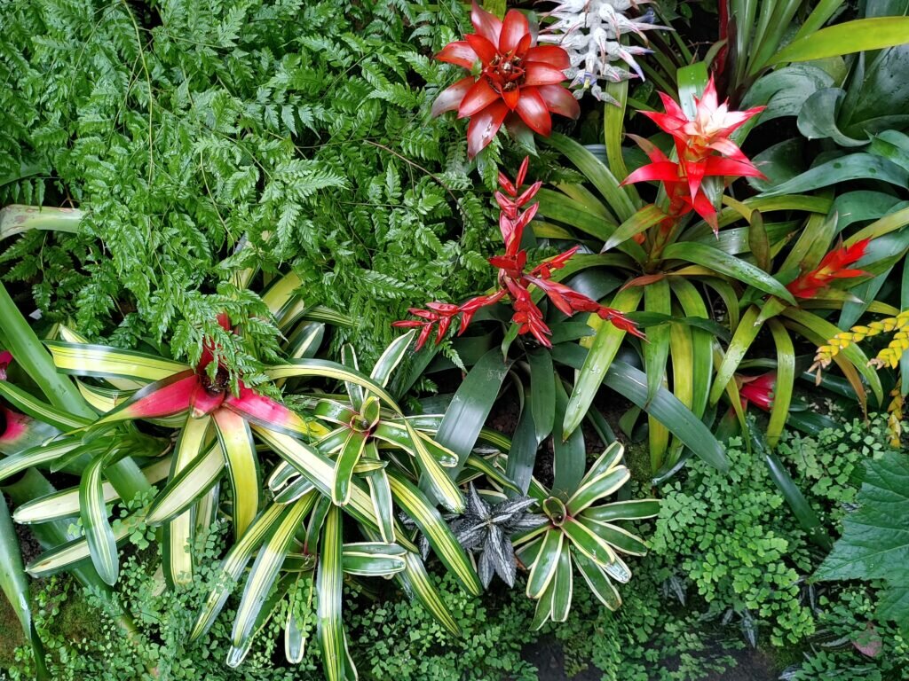 In den Tropenhäusern merkt man gleich, hier geht es um „Show“. Entlang des Besucherpfades werden gerade blühende Exemplare hineingestellt und Blattpflanzen kontrastreich kombiniert.